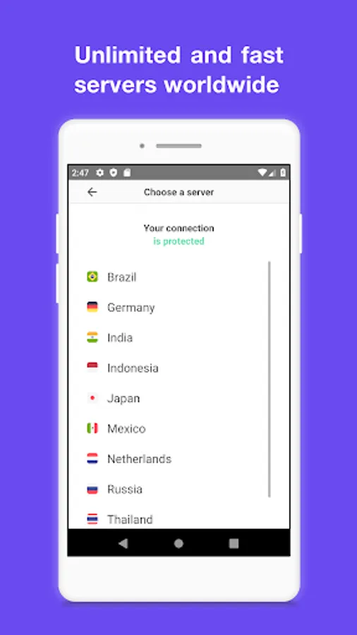 - Access to worldwide servers: Brazil, Germany, Indonesia, Japan, Mexico, Netherlands, Russia, Thailand, USA Dallas, USA New York, Ukraine, United Kingdom, Vietnam;