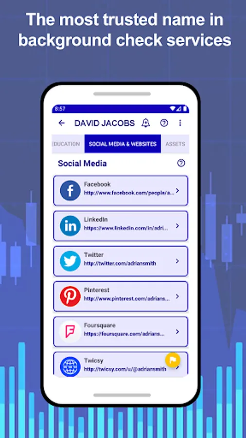 The most comprehensive background check app currently available. TrustWise does it all and it's brought to you by a name you can trust. Find out for yourself what lies beneath! You may not be ready for what our app can uncover. Download for free right now and start a simple background check.