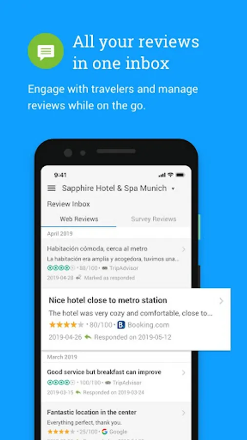 * Access all of your online reviews for all of your hotels