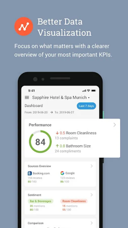 New improvements to the TrustYou app allow you to efficiently manage your reputation and guest communication while you are away from your desk. A new design makes it easier for you to view and respond to online reviews. With the new dashboard, you quickly view and analyze your main hotel KPIs. Requires the TrustYou Analytics and/ or TrustYou Analytics Enterprise license.
