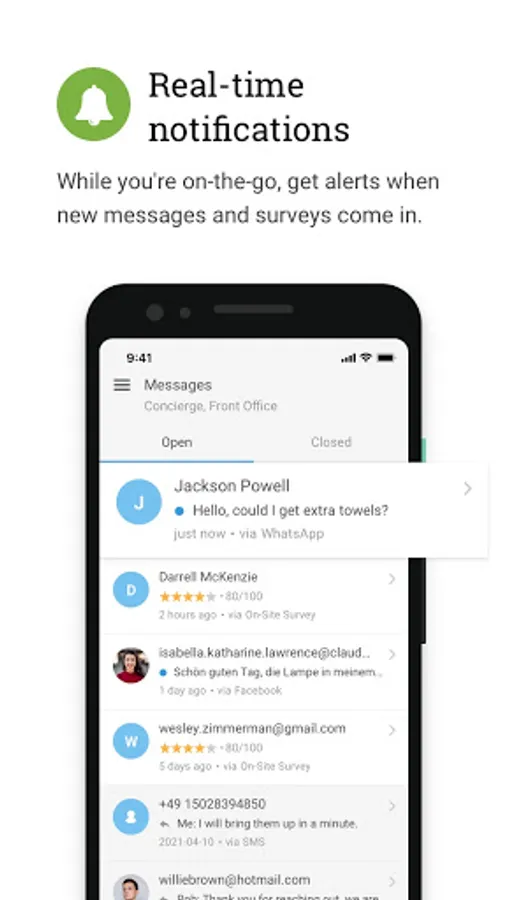 * Receive guest messages and Live Survey reviews in real time