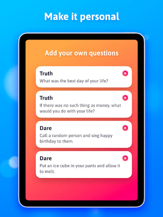 ● Hundreds of original, funny, and challenging Truth or Dares!