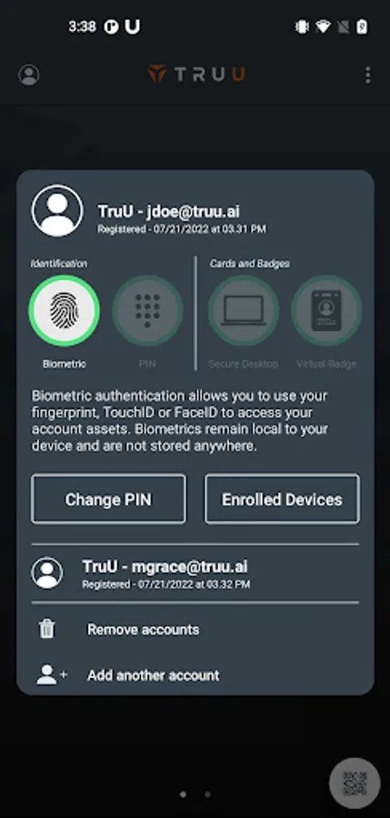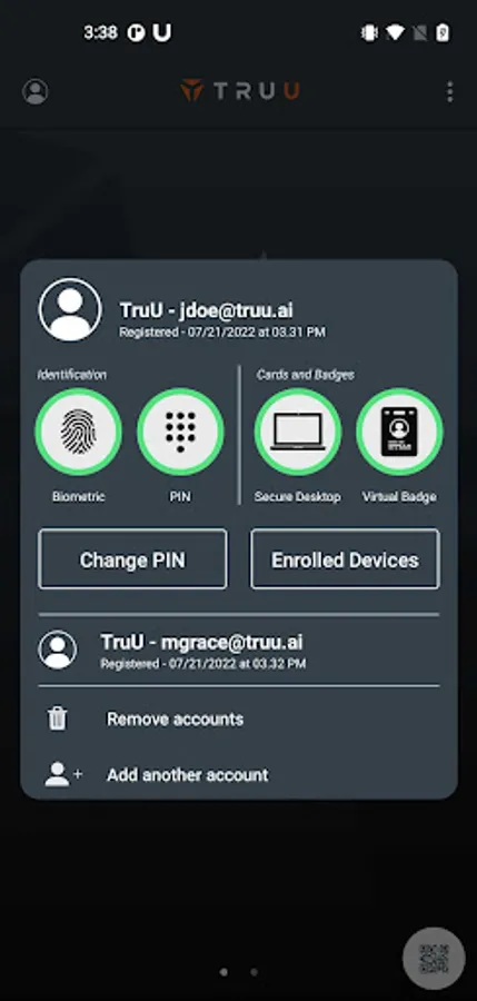 The TruU mobile app works with the TruU Identity Platform for secure frictionless access (known as TruU FluidID) to your organization's digital and physical resources. Use the TruU app to: