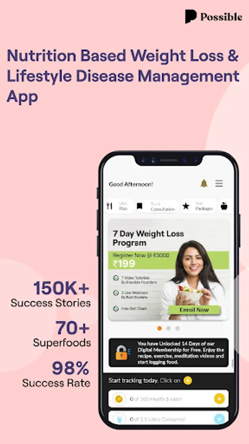 Possible is a health and wellness app that provides weight loss and lifestyle disease management programs with the help of personal dieticians, customized diet plans, and tasty, ready to eat superfoods!