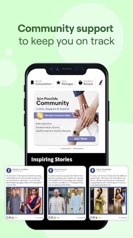 Daily support and motivation through the active community of like minded people who are together with you in your weightloss and health journey.