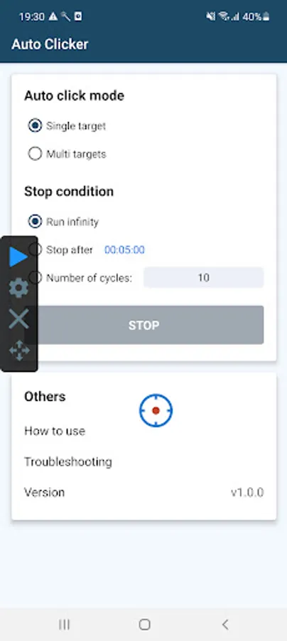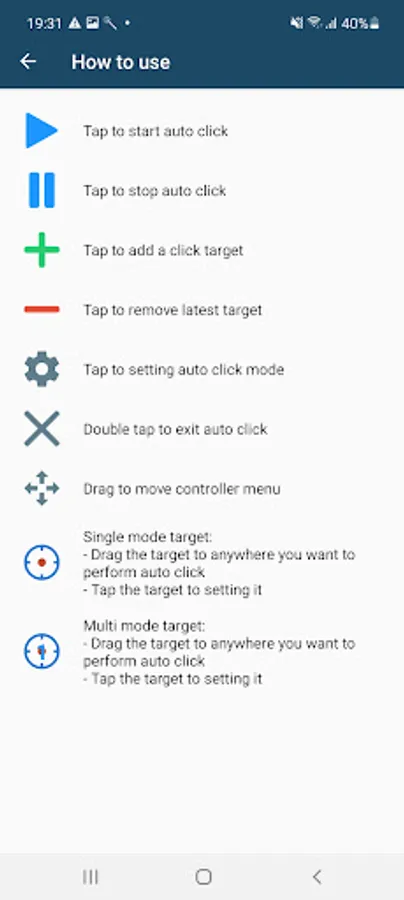- Important: Auto clicker uses Accessibility Service to perform auto click on other apps