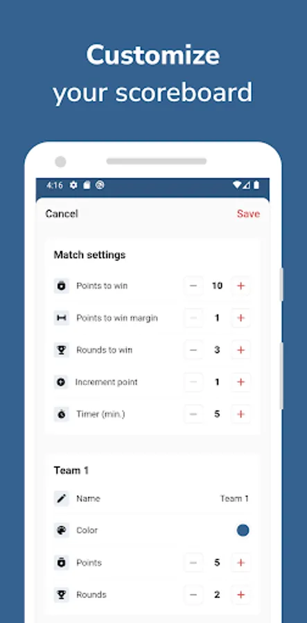 • Custom Team Names: You can set custom names for the two teams, making it easier to keep track of who's who