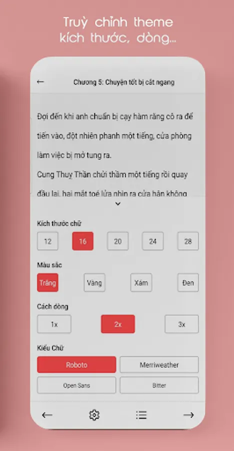 # Tuỳ chỉnh theme, cỡ chữ, kiểu chữ, màu nền, chế độ sáng, tối, đọc truyện không mỏi mắt