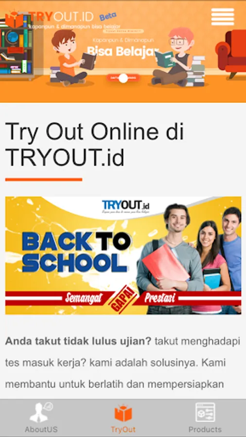 TRYOUT.id as a learning center + discussion about the most complete and best in Indonesia, has some advantages that are strong reasons to help realize passed the selection test. Whenever and wherever it can learn, because TRYOUT.id can be accessed with a mobile form light without annoying ads.