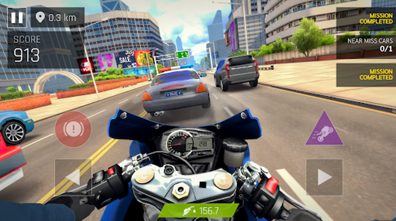 - Get extra score multiplier when overtaking traffic cars closely