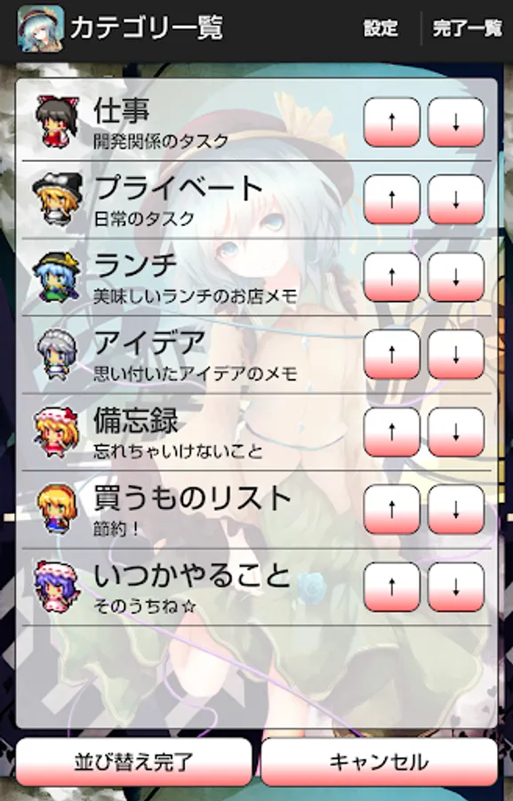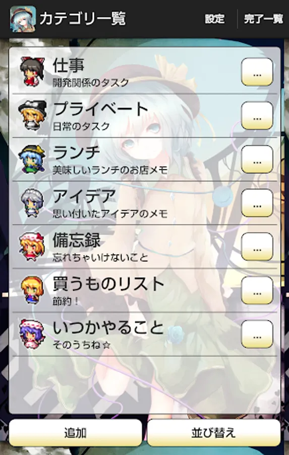 It is a task management application with simple functions. You can specify a character icon for the category.