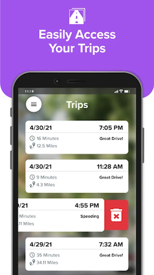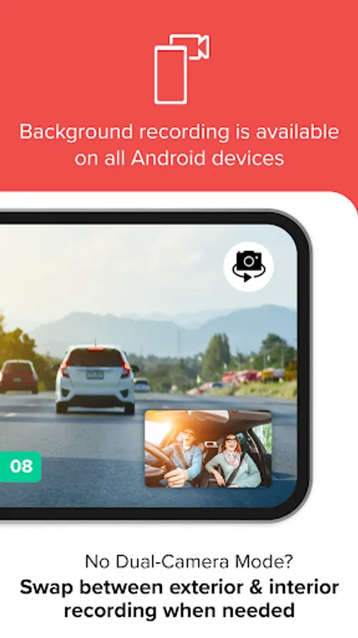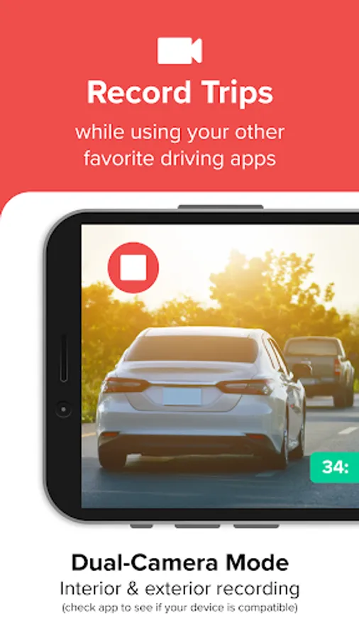 Record external & internal video simultaneously. Both video files are attached to each trip for easy and convenient viewing. The feature is available on certain Android devices.