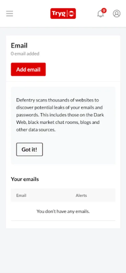 Tryg ID Protect is provided as a service with some of Tryg Forsikring’s insurances and products. If you’ve gotten a welcome email from Tryg ID Protect, this means that you can use this app.