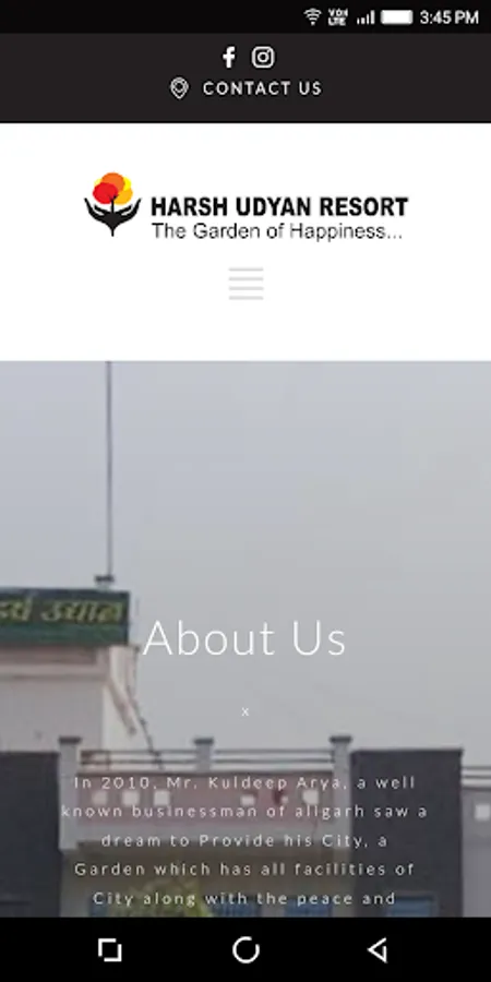 In 2010, Mr. Kuldeep Arya, a well known businessman of aligarh saw a dream to Provide his City, a Garden which has all facilities of City along with the peace and natural beauty of the Village. so he laid the foundation of “Harsh Udyan Resort” on the name of his beloved Father Late Shri Harsh Dev Arya in 2013. till 2016, Harsh Udyan Resort is one of the best places in the city has the most prominent services available in Surrounding Cities. More than 100 Events relate to cultural, occasional & Familiar hosted by us in past 3 years. we have a firm belief to provide the best of us to our City at an affordable price. Do visit Once the Garden of Happiness.