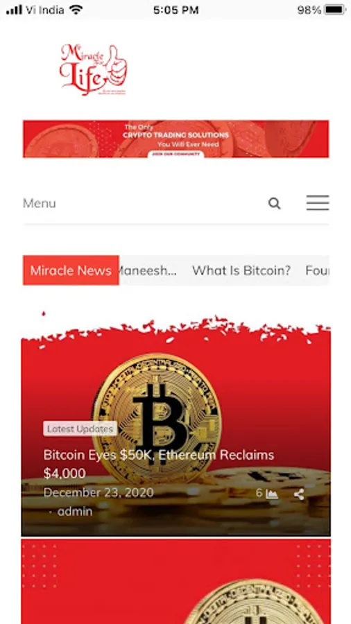 Miracle for Life is a useful application for crypto enthusiasts. It includes an aggregator of news and articles, a crypto market monitoring feature, and a portfolio manager. Users also can choose the main screen of the application.