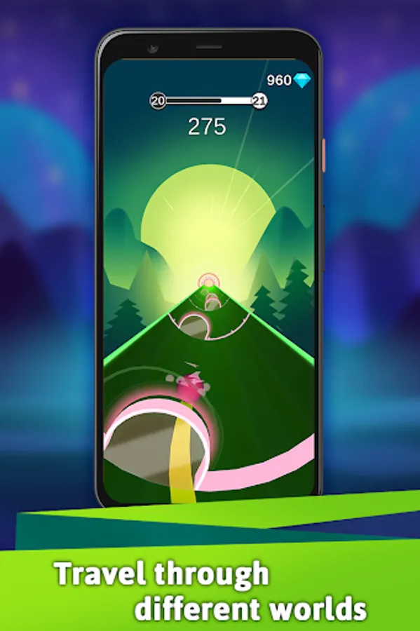 Enjoy arcade racing and gather gems as you roll through the gates. and see how high you can get your score! This addicting game will keep on challenging you as you aim for higher and higher heights.