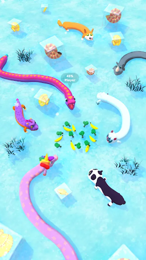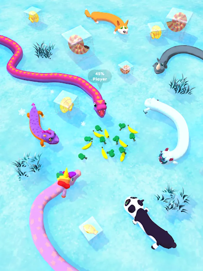 Keep eating and competing in the arena to open new islands! Every level has an achievement scale to keep you up with your progress. Don’t forget about tons of cute and funny skins – they will unlock as you progress through the snake game!