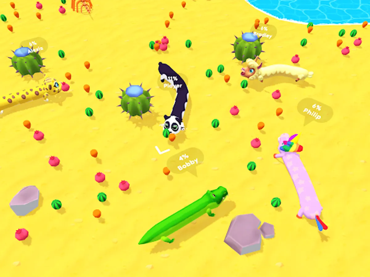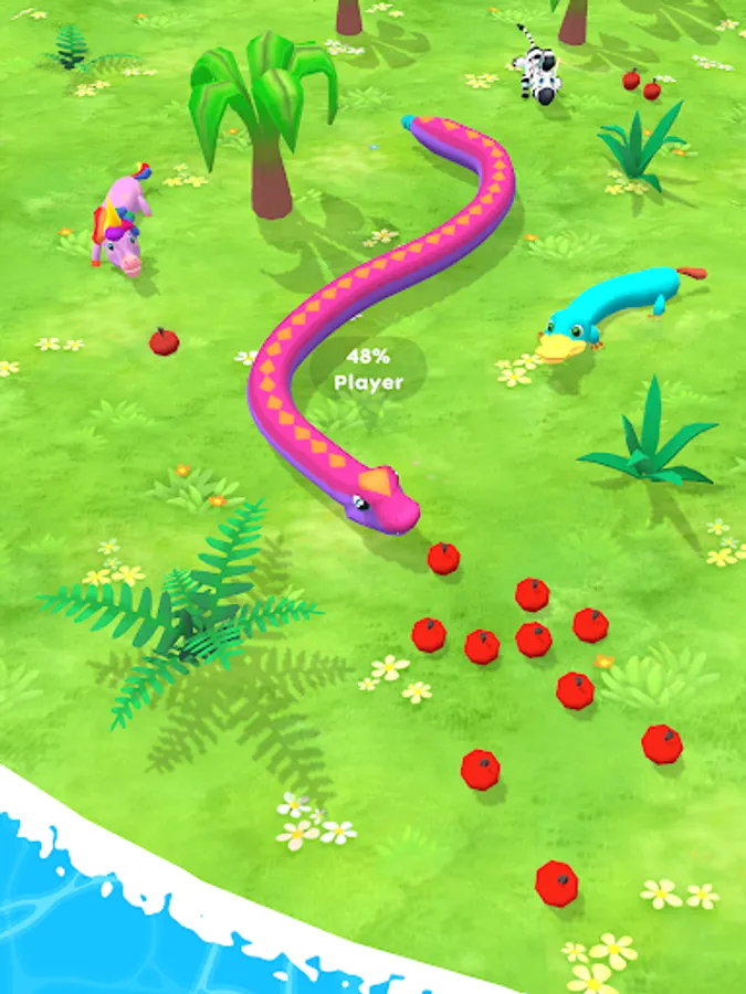Beat all the rival snakes on the island! Eat scattered fruits and enemies to become the longest snake! Try to avoid obstacles, encircle smaller enemies, and never stop growing! This io game is for those who like snakes and worms!