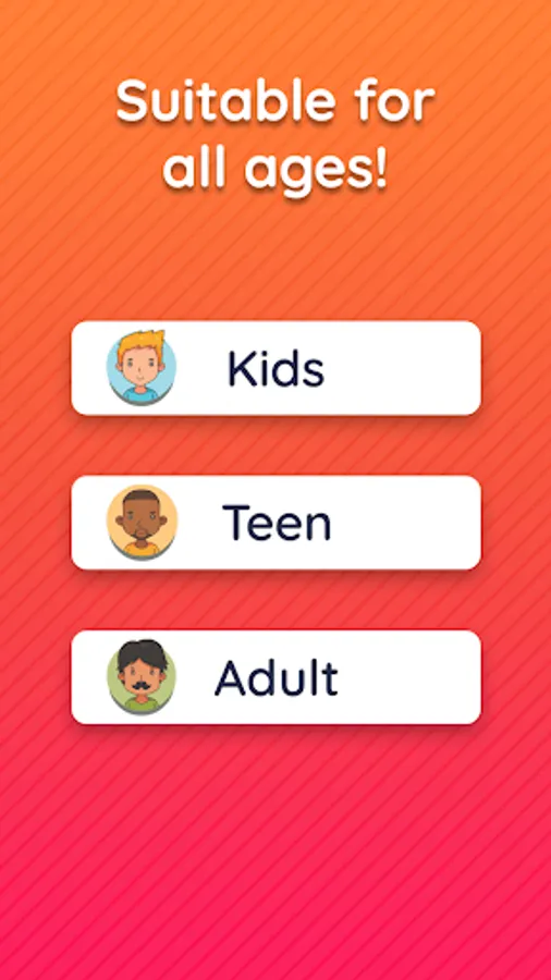 ✔ 3 different game modes - Kids, Teens, and Adult (18+)
