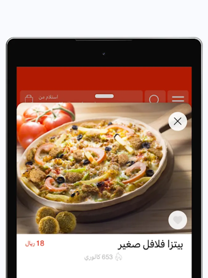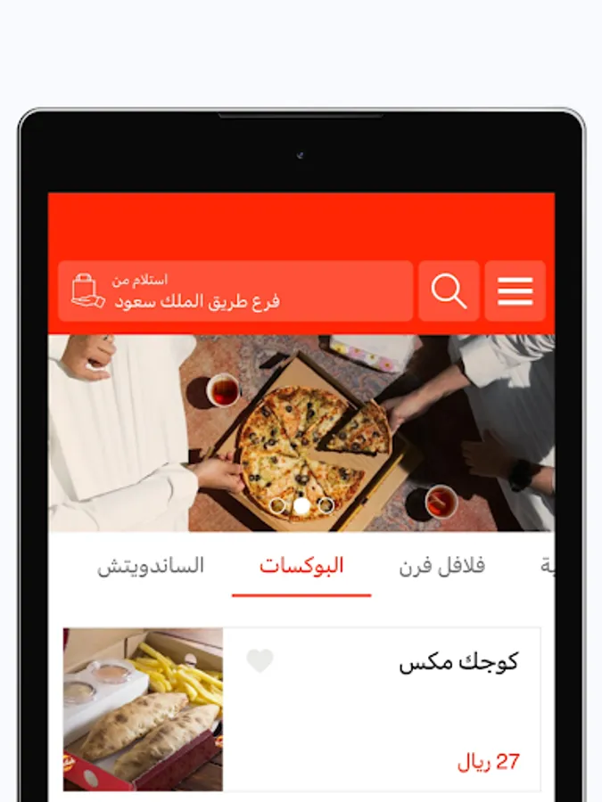 Download the application, view the menu, the new falafel pie, and order directly from the application