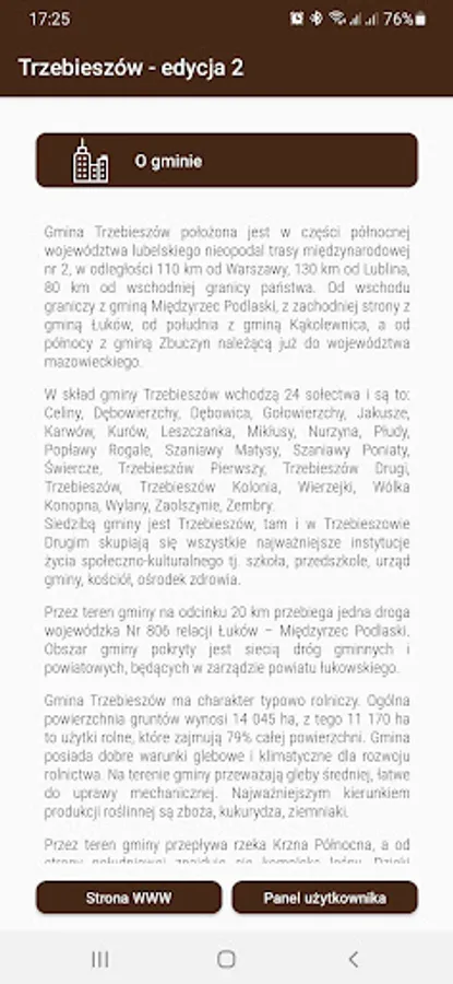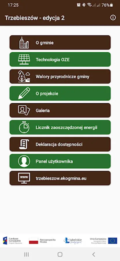 In addition, the application presents figures on energy savings, information on the RES project and technology, and on the natural values of the commune protected by the project. The application includes a photo gallery from the area of the Trzebieszów Commune.