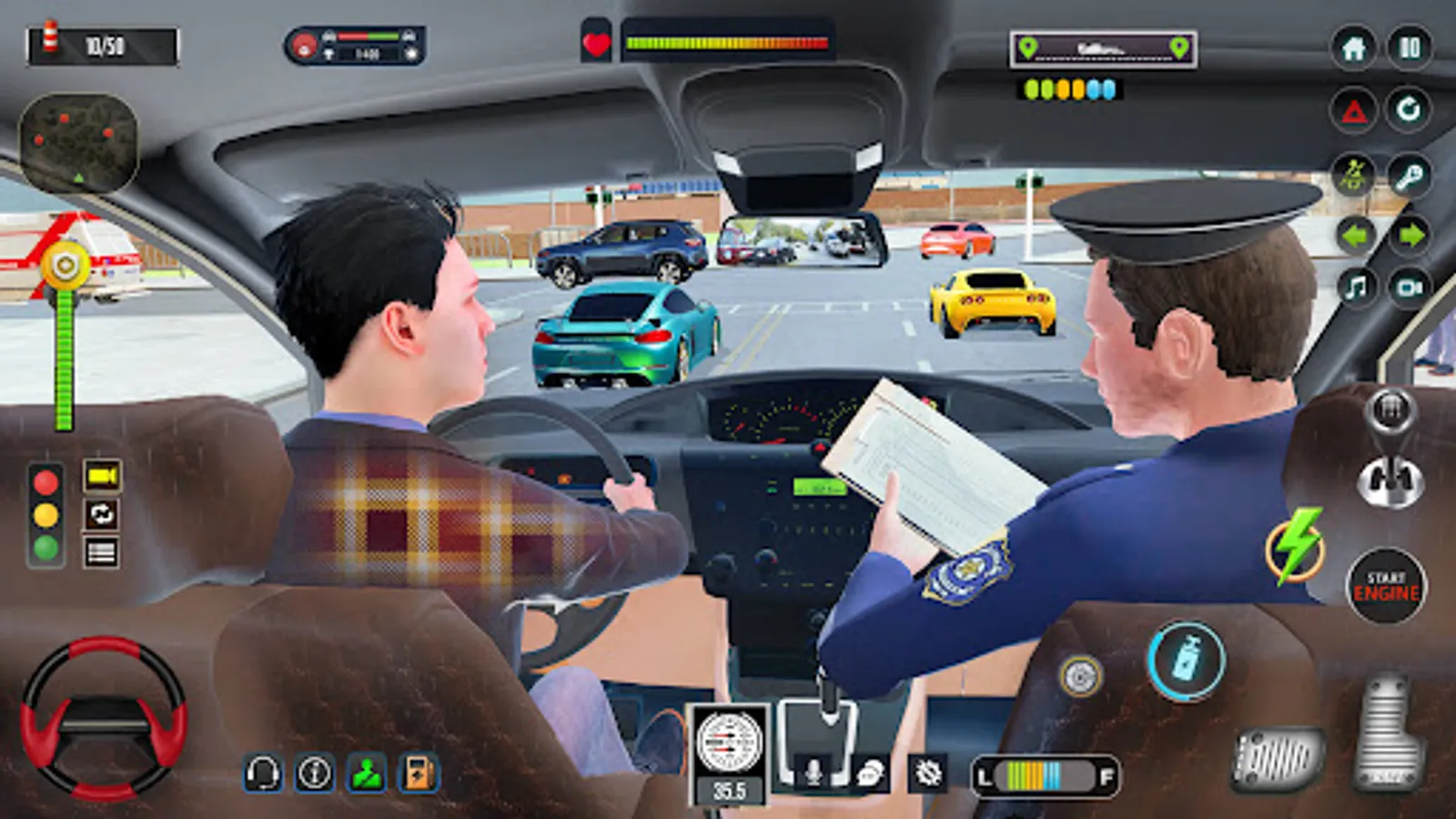 Start the engine of a car driving simulator: traffic racer driver driving school games 3D, fasten your seat belt, and don't worry if you don't know how to drive on roads. Once you learn all the rules in this driving academy and traffic racer driver games, you will be able to take the classic car driving school test. Show all your modern car driving school games skills in this real driving game to get your driving license. So try to follow rules, drive slowly, and show your skills in this driving school game to get your original driving license.