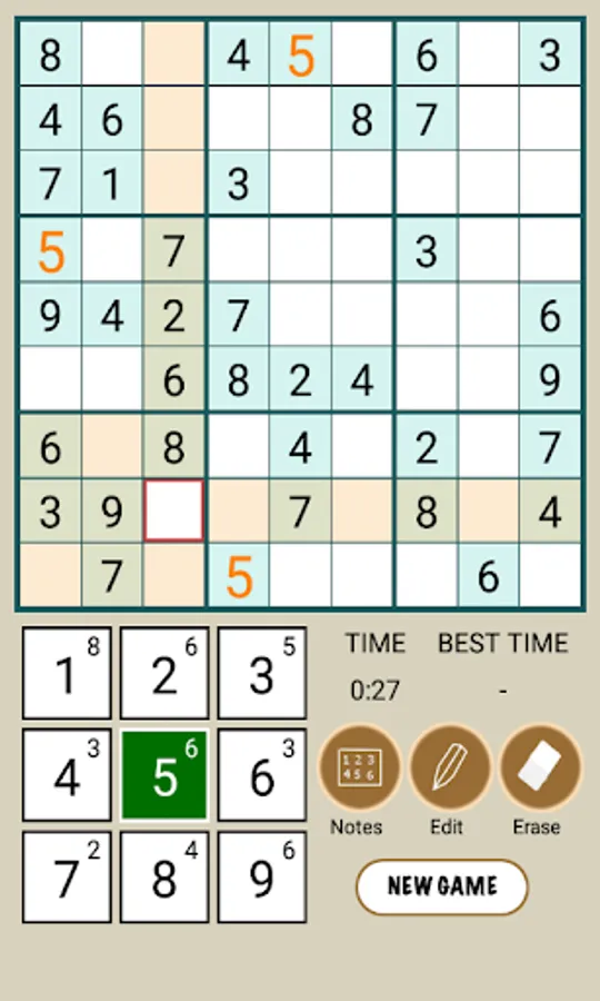 There are three tools erase, edit and notes, tap erase button to remove an entered number or note. Tap edit/pencil button to activate manual note mode, you can put 9 (1 - 9) notes in a cell, tap notes button to put automatic notes.