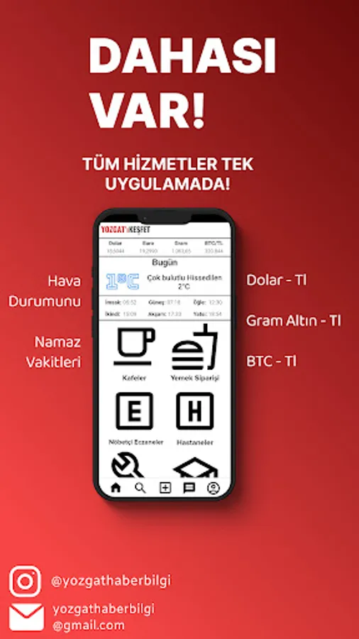 Can't find the news in Yozgat? Too many news sites? Do you find it difficult to browse websites or pay for the newspaper to read the news? Don't think about them anymore! Download the Yozgat Agenda application and easily have all the news in Yozgat at hand. You can also take a picture or video of newsworthy events around you and send it to us. Of course, not only that, you can easily find cafes, restaurants, pharmacies on duty, hospitals, repairmen, educational institutions, minibus stops and taxi drivers in Yozgat. It's not over! You can follow the Dollar, Euro, Gram Gold and BTC rates instantly, you can look at the prayer times and the instant weather. Finally, you can make a report or a complaint or view the complaints on the Complaints page. Download now and take advantage of these conveniences right now!