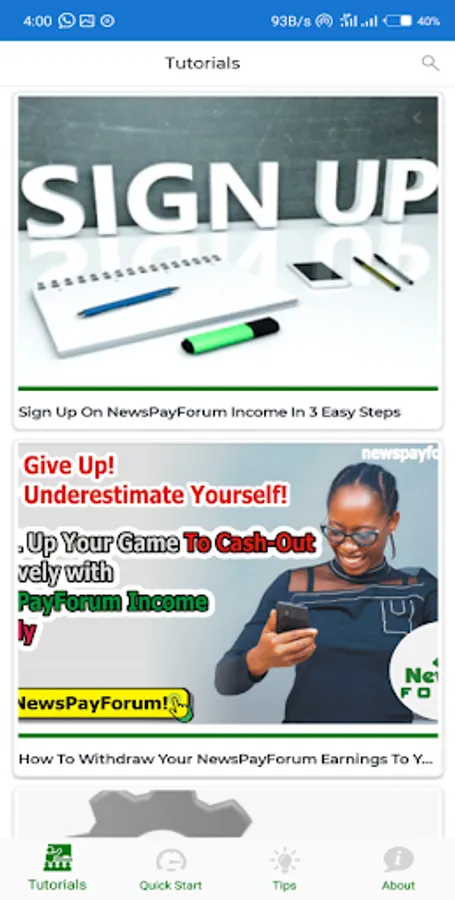 Access all tutorials on how to perform a simple task on NewsPayForum in just one mobile application. These tutorials are in PDF formats accompanied with a lot screenshot and steps on how to achieve a particular task.