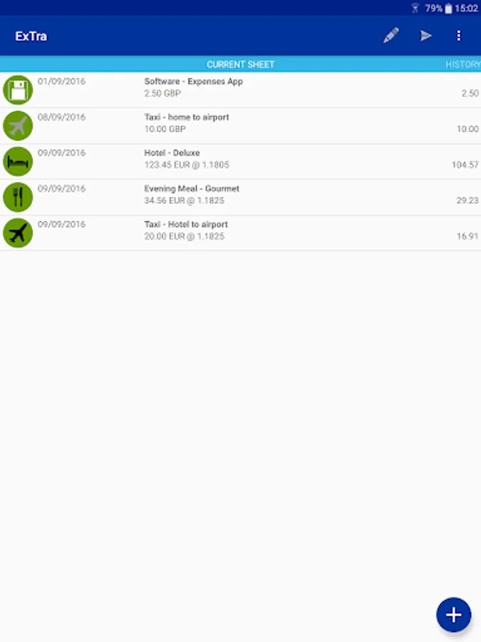 Track company expenses in multiple currencies as they are incurred. Take a photo of the receipt, enter the details and at the end of the month submit your expenses on an easily customised spreadsheet matching your company standard. Each expense can be categorised and allocated to a particular customer or project. Never lose an expense receipt again.