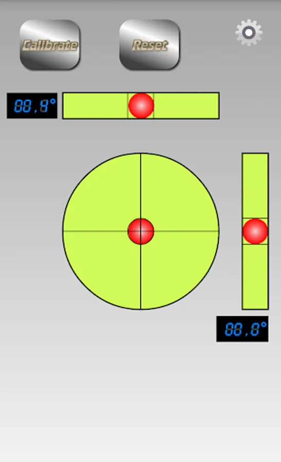 Your device should already be calibrated by the manufacturer. In case you believe it is wrongly calibrated you can re-calibrate your device by pressing calibrate button. Placing your device screen facing up on a perfectly leveled surface (like the floor of your room) and press CALIBRATE. Press RESET to return to your device default factory calibration.