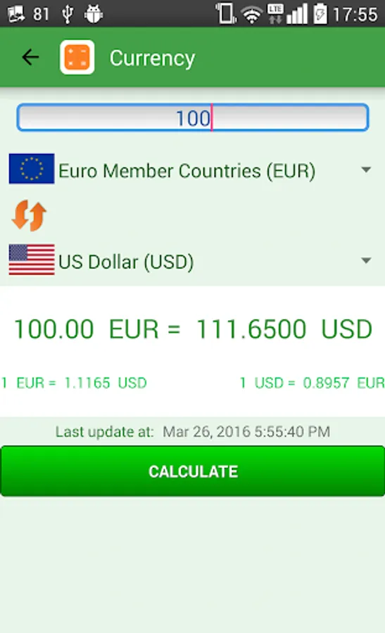 • Currency conversion with over 160 currencies. (Live rates provided by Yahoo Finance)