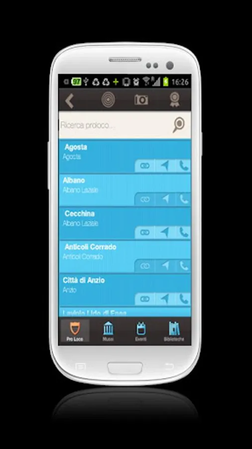 Proloco: displays the list of all Proloco the province of Rome, with whom to contact to get more information by phone, is starting to reach the Navigator of your smartphone.