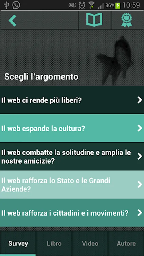 This application, as well as illustrating the book and present the author, including texts and videos, poses these questions directly to the public of the internet and social media.
