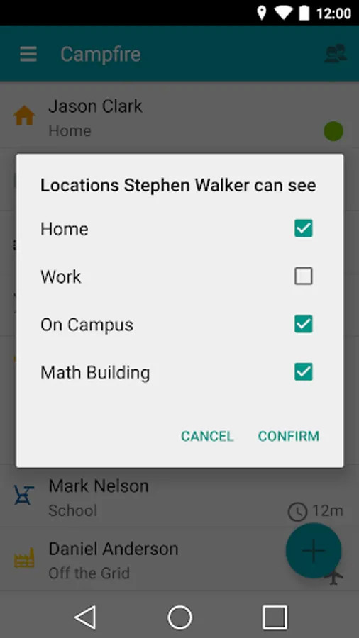 Campfire lets you share your location anonymously with your friends. Just add a location, name it, and Campfire will update your status when your are there.