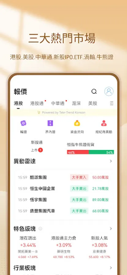 The Hongye Trading Treasure of Hongye International Financial Holdings Co., Ltd. provides users with more convenient and comprehensive data and information services, allowing investors to easily view stock market information and trade no matter where they are, holding the pulse of the Hong Kong securities market .