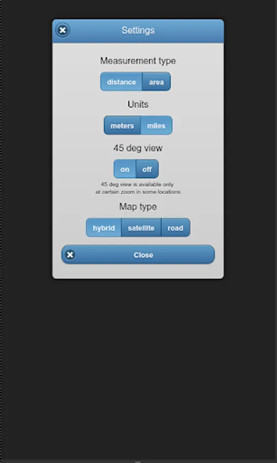 2. From the Settings menu you can change the type of measurement – area/distance.