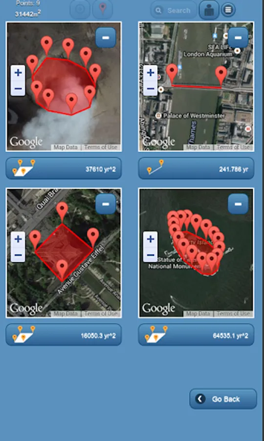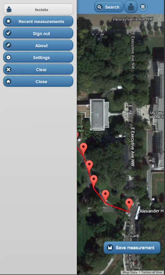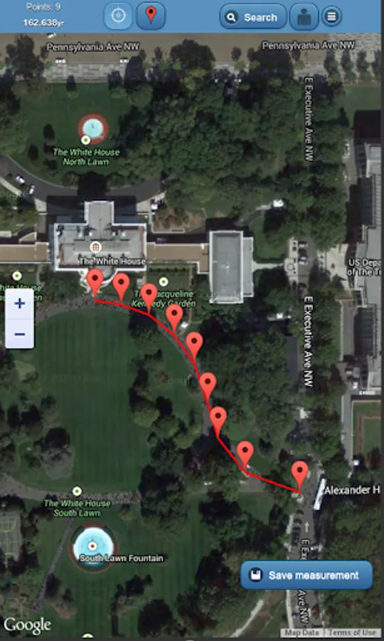 2. Use the red marker form the top menu to add many markers on the map. They may represent your route in case of distance measurement or the boundary of your estate in case of area measurement.