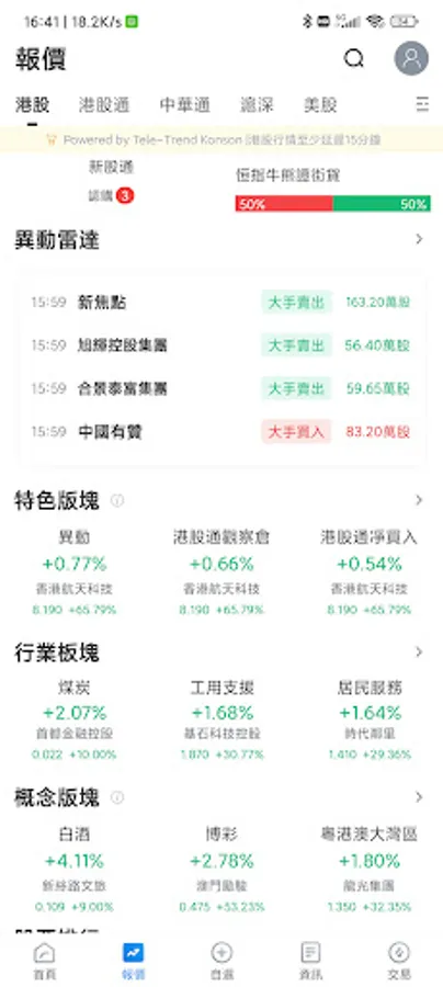 In addition to the market data of Shanghai, Shenzhen and Hong Kong, more than 1,500 daily market news and individual stock information provided by Dao Zhongsi, Quamnet, Tencent, Southbound Stock Connect, etc., help investors to capture faster and more comprehensively Market news