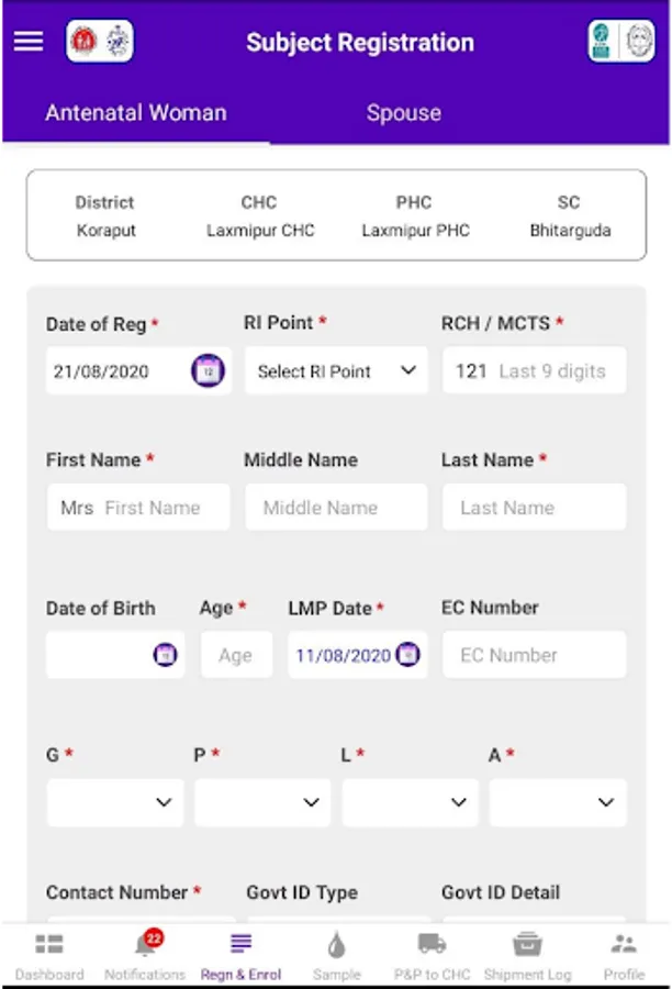 In this program, we will be screening pregnant women and their spouses (when indicated) along with voluntary screening for Thalassemia and Sickle cell disease. Data capture in the community will be through an android platform using the TSCOD app