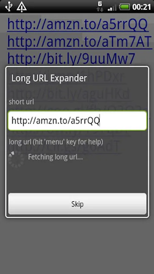 ★ Expanding the urls in side of the browser, without the dialog is not possible (Android API limitation)