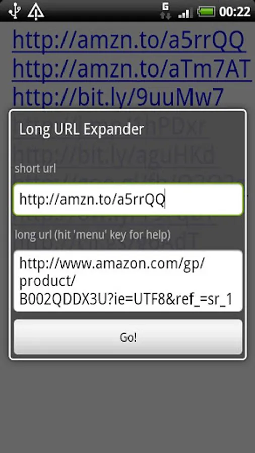 ★ If you click on an short url service and it doesn't gets expanded and doesn't show in the "ShortUrl Service List", send an eMail to the developer. The eMail Link can be found below the description in the Android Market!