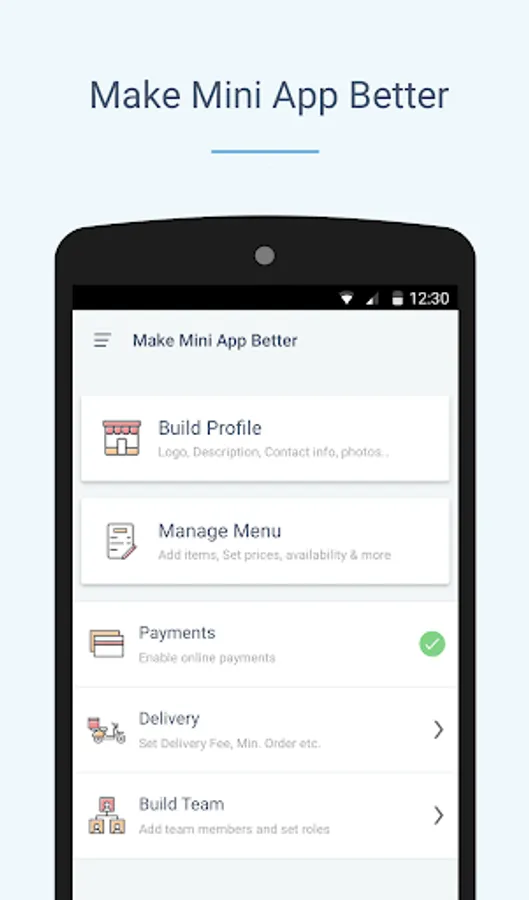 Mini Apps are readymade Apps - so you don't need to Create an App of your own. To get a Mini App is similar to Make an App without coding. These Mini Apps are available in the Goodbox Mega App. The Goodbox Partner App is the Mini App Manager Console. Your Mini App Manager helps you edit your Mini App, take orders / payments online & chat with your customers. When you Create an App on Goodbox, it helps you take control of your online presence. You don't need to go through the hassles of hiring an App developer or an App designer and work on Android & iOS Apps separately. The Mini App comes ready on Android & iOS, both. A good box of experiences awaits your business with our Partner App.