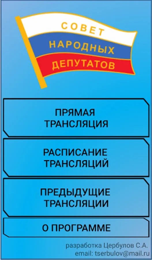 The application is designed to view live broadcasts of regular sessions of the Council of People's Deputies of the Taiga City District.