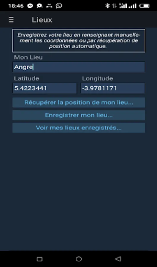 -4- Record the GPS coordinates of your favorite places (Home, Office, Restaurant, etc.).