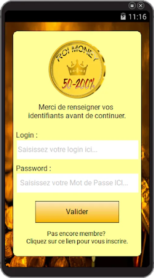RoiMoney50 is a finance management application. It is the platform of the ROIMONEY50 product of the company DSSD SARL. Intended for savings management, this application is intended for members of this service.