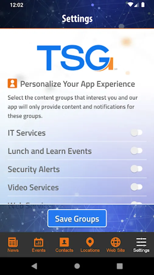 TSG is a technology and creative services provider headquartered in Wheeling, WV. Download the free TSG app to gain access to real-time alerts, news, upcoming events, a complete TSG contact directory, location information and more.