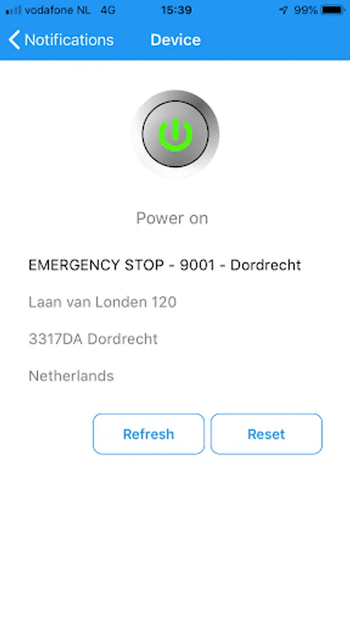 After selection of a device or related notification, the status of this device will be shown.