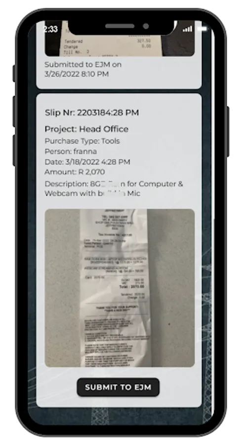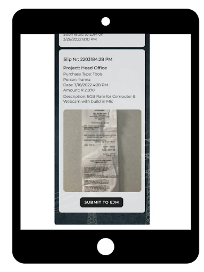 Custom Mobile app for Cash Receipt Capture, Checklists, Stock capture, Inspections.