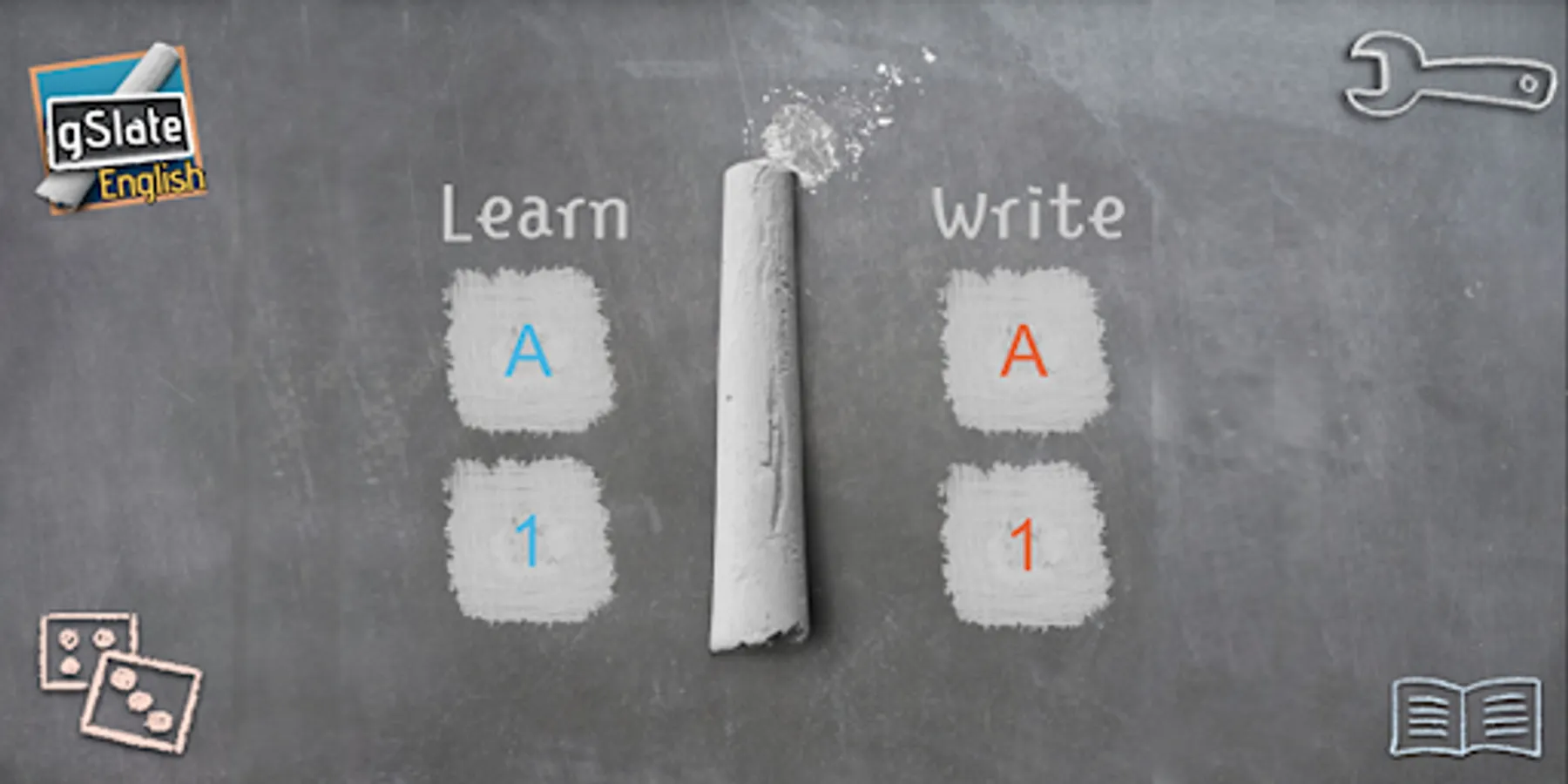 A realistic interface mimicking the familiar chalk and slate